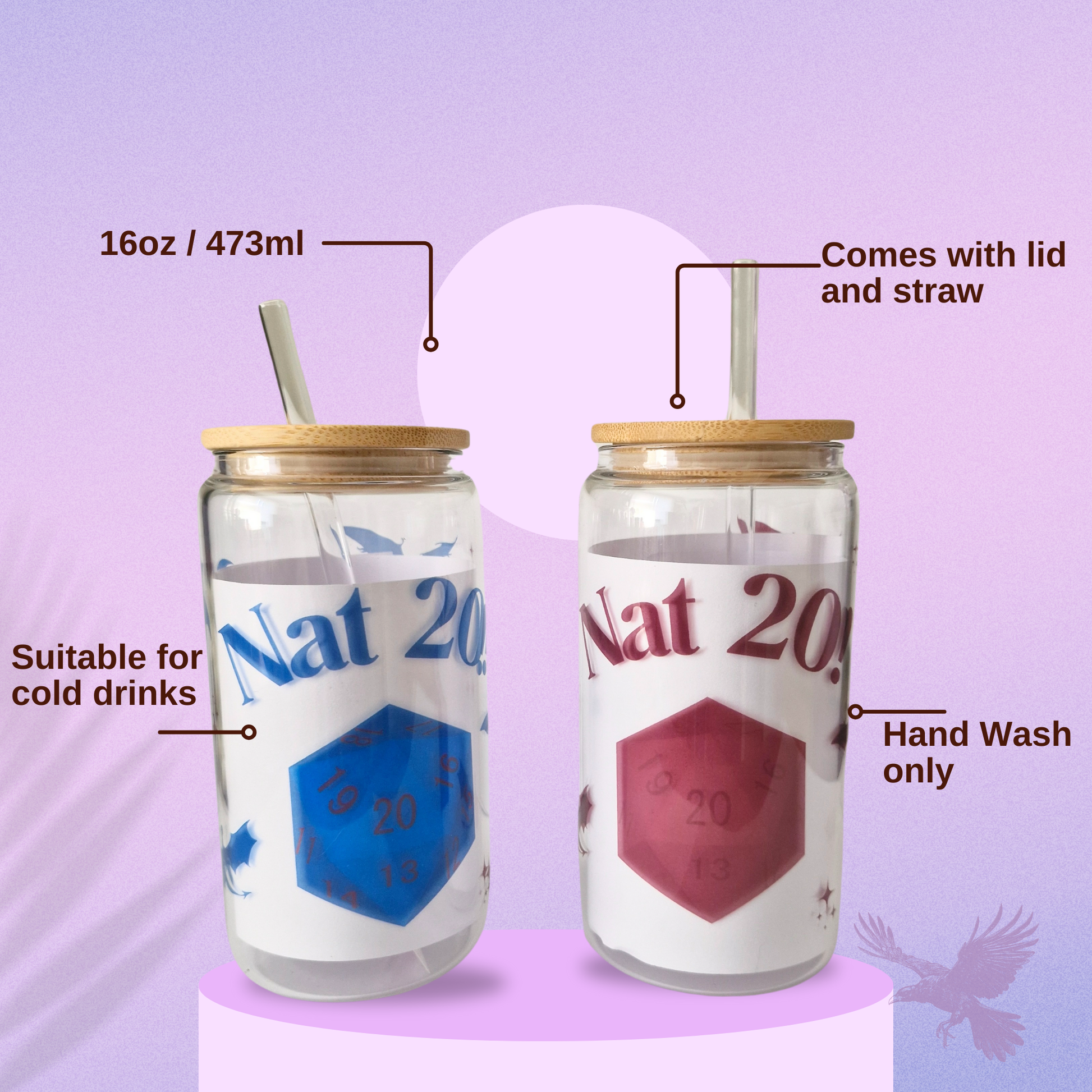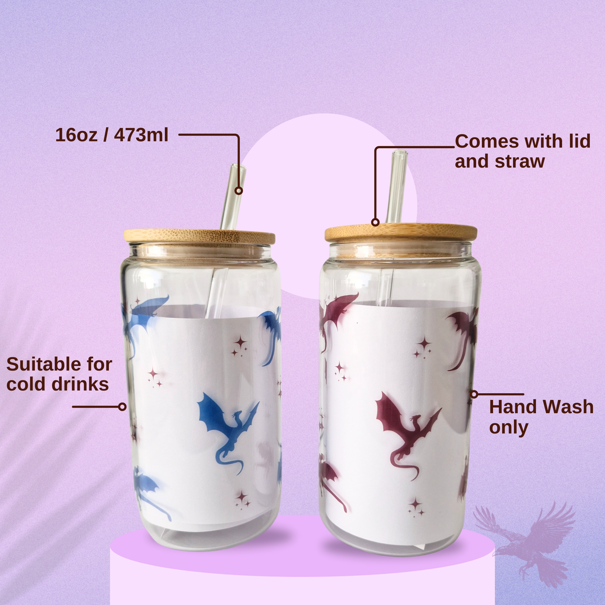 Glass size: 16oz, 473ml. Care: Hand wash only. Do not soak or microwave. Suitable for cold drinks. Comes with lid and straw. Bamboo lid should be washed and immediately pat dry, do not soak.