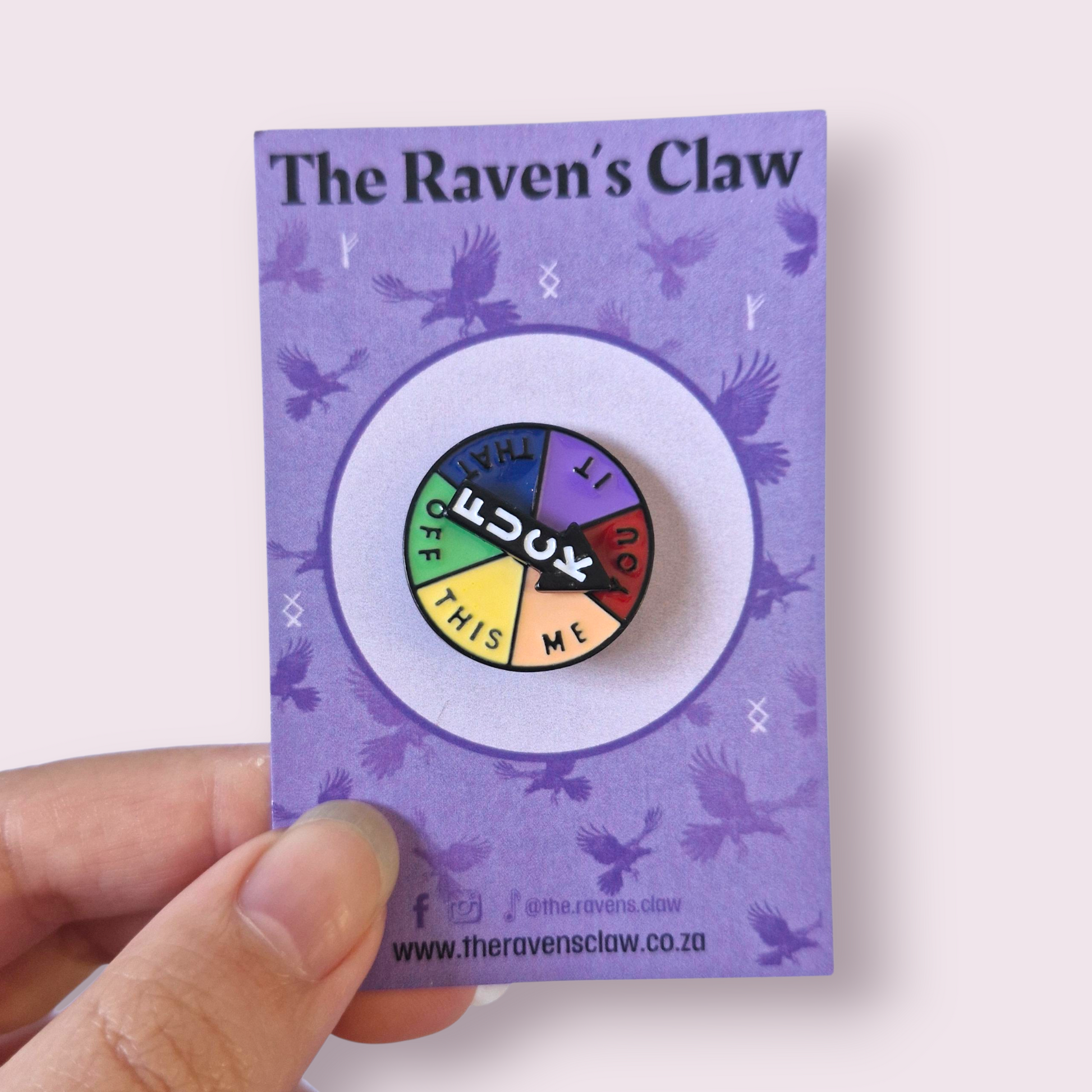 This hilarious spinning swearing pin is sure to bring some laughs and flavour to your outfits. Size roughly 2.3cm. Material: enamel