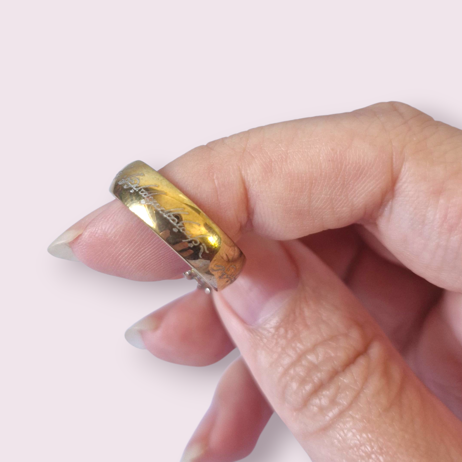 This stunning piece is the perfect gift for any LotR book or movie fan and one of my best selling items. The inscription is both on the inside and outside of the ring. Material: Zinc Alloy. Size roughly cm