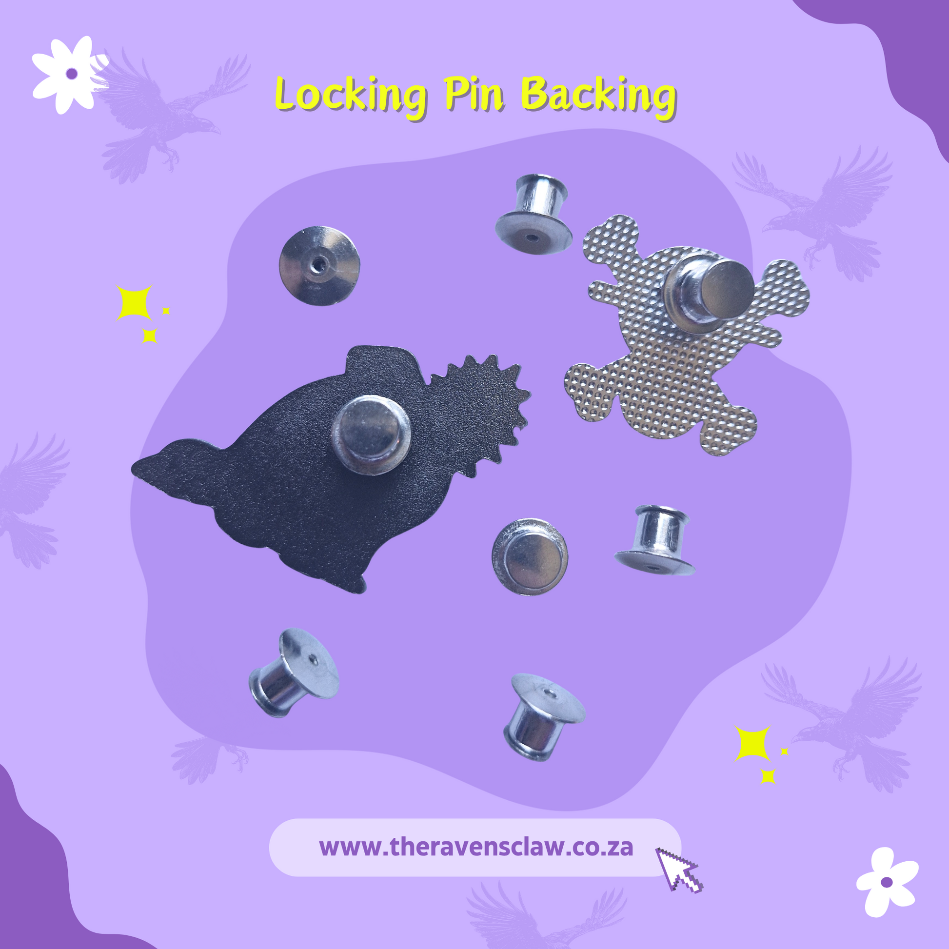 Always losing your pins? These incredible new backings are here to help with a strong- locking mechanism that keeps them in place. Simply switch out your rubber/metal backing to your new locking one and you're good to go. To unlock, pull the tip pf the locking backing up and slowly twist and pull the whole lock until it comes off. Please note these are sold individually and do not come with a pin.