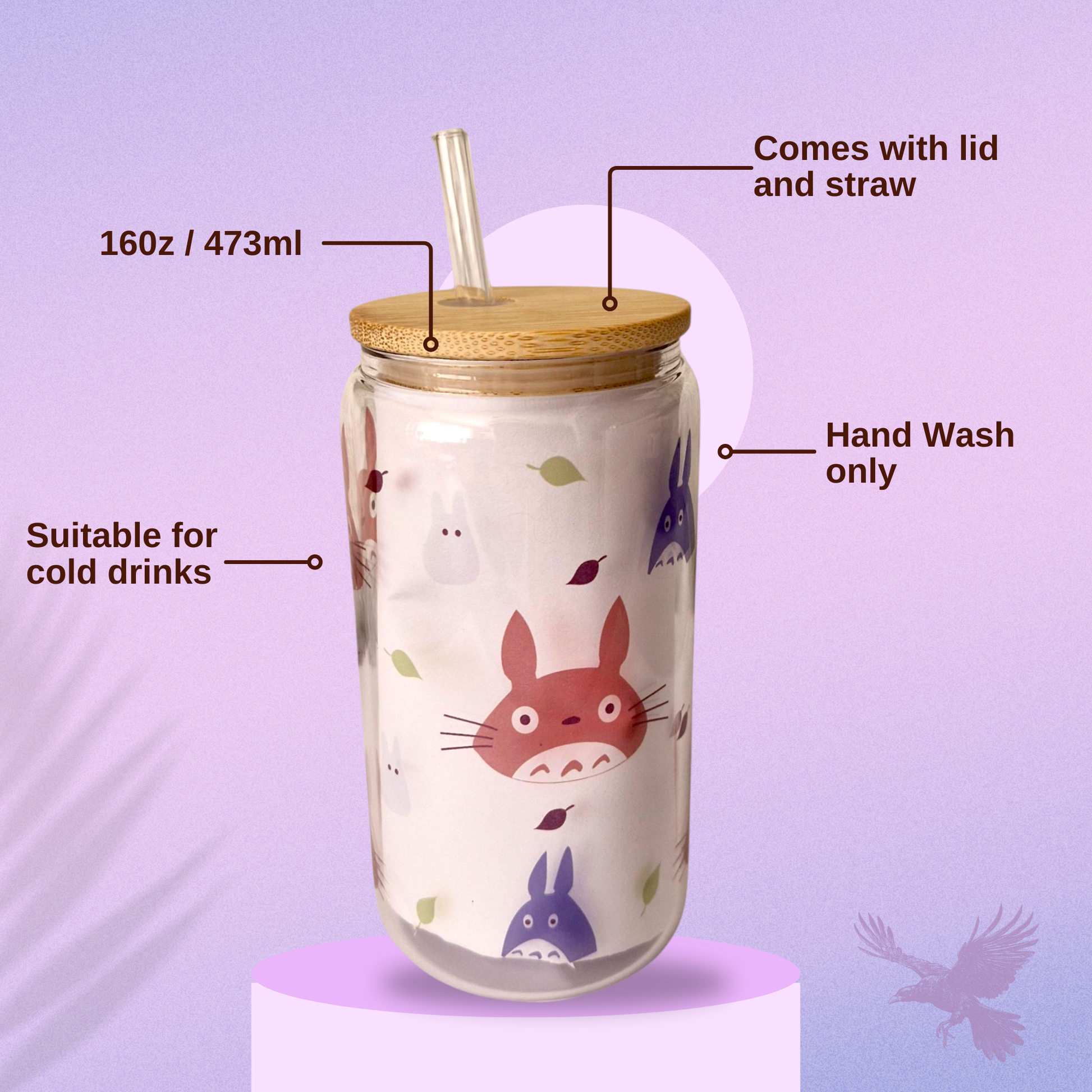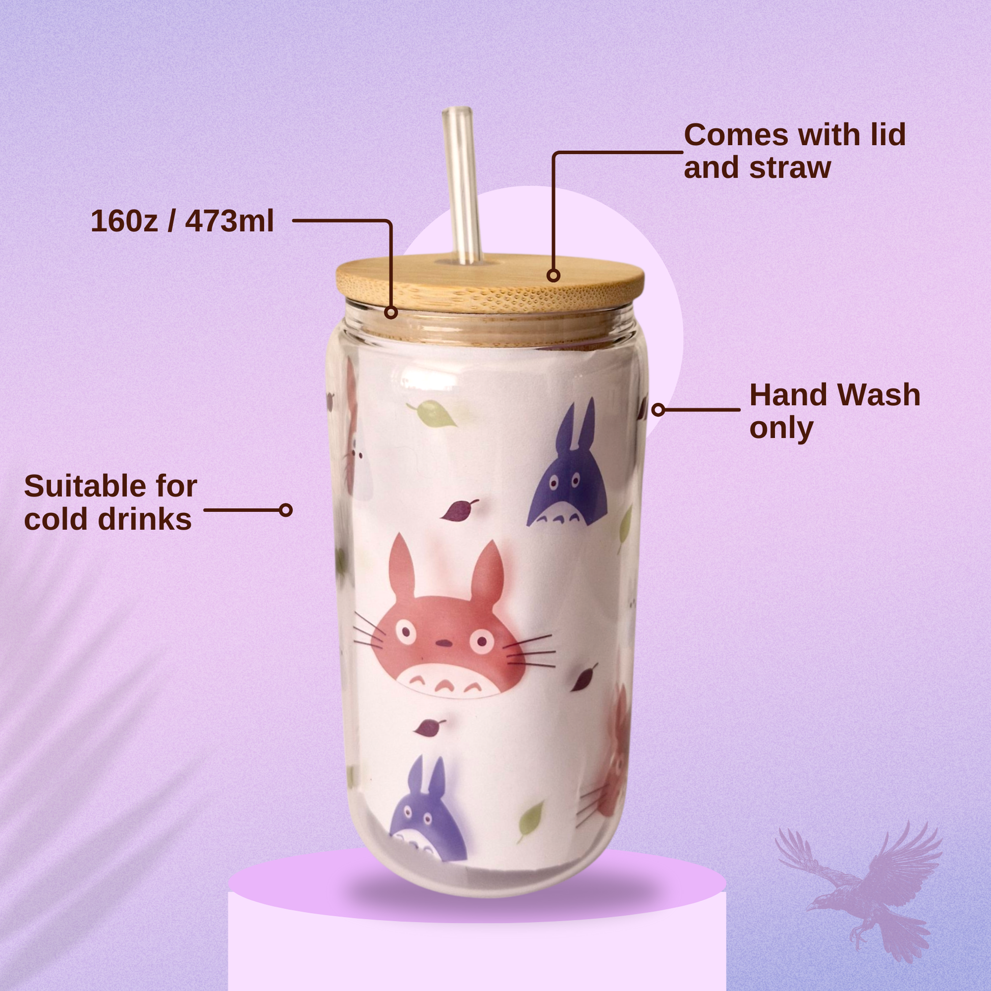 Tumbler size: 16oz, 473ml. Care: Hand wash only. Do not soak or microwave. Suitable for cold drinks. Comes with lid and straw. Bamboo lid should be washed and immediately pat dry, do not soak.